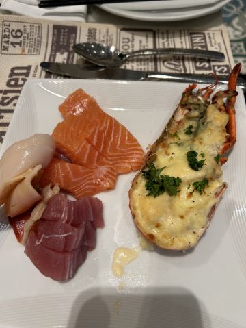 波士顿龙虾,鹅肝,三文鱼,澳门葡挞,青口,烤羊排,小龙虾,心太软,味噌汤,番茄酱意大利面,猪脚,白汁意大利粉,油干鱼赤身,甜虾,长脚蟹,牛排,鲜虾鱼吞面,火爆辣鸡香蒜披萨,黑蒜烤生蚝