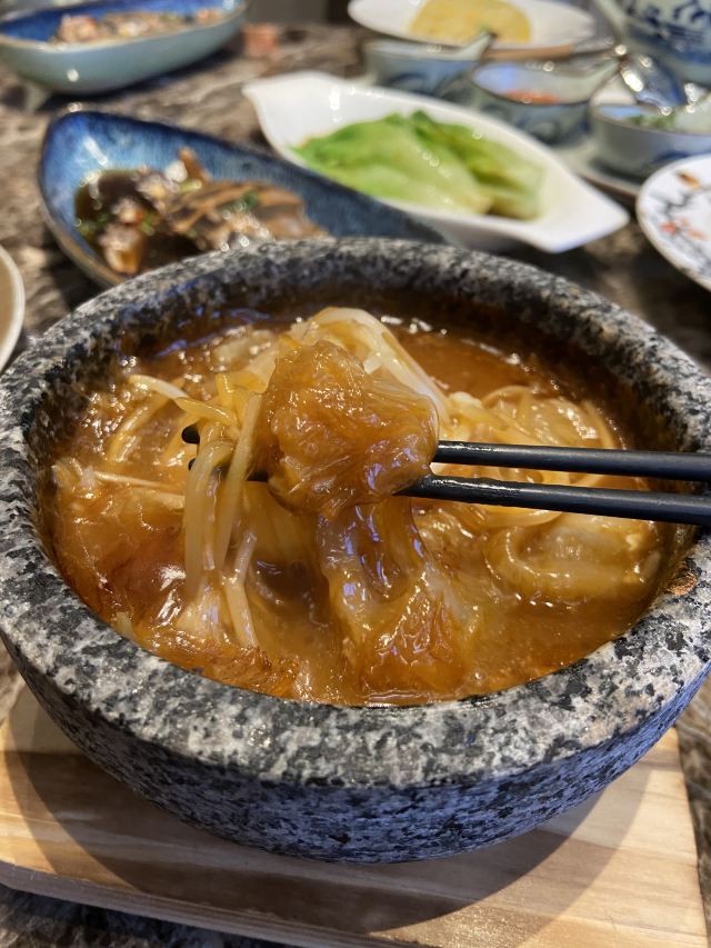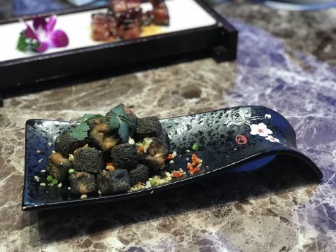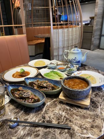 這裡的小菜非常好吃,推薦獅蚶、蜜汁叉燒、二面黃,特別推薦椒鹽黑豆腐(我們點了二份),不過椒鹽黑豆腐已不再出品,廚師因為我們欣賞他的廚藝就特意為我們做了這道菜! 至於點心就比較一般。 餐廳內收藏了很多茶壼。