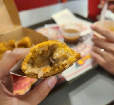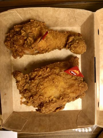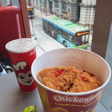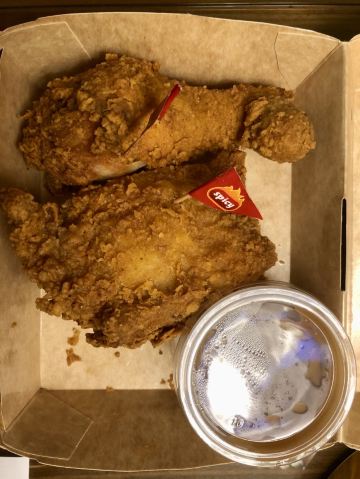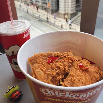 ☘️声名在外的菲律宾炸鸡,终于有机会可以品尝。 ☘️店内主打套餐,但是也可单点。 ☘️店员不会说粤语和中文,点餐只能讲英语。当然也可以对着菜单比划点单。 ☘️ 炸鸡腿 :皮脆多汁,口味浓郁,不是冷冻鸡,和以前吃过的炸鸡完全不同,喜爱程度可以排在Top 3之列。辣味的炸鸡上插着一面小旗子,不能吃辣的同学谨慎选择。 ☘️打包回酒店吃完全不影响口感,虽有肉酱佐味,但个人感觉不蘸酱更好吃。