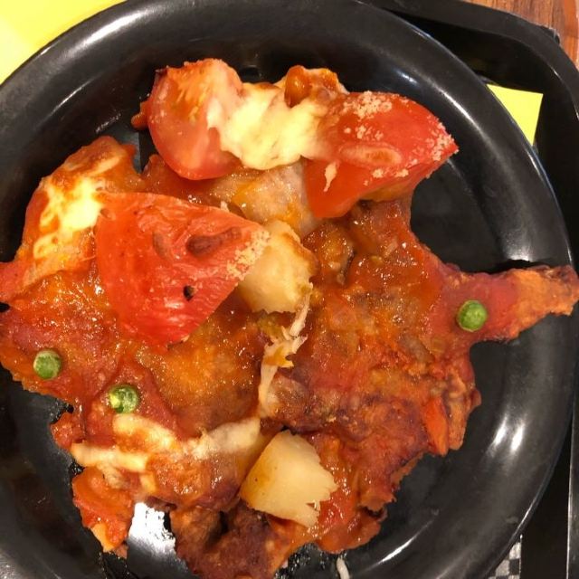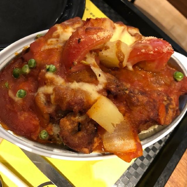 安检的外面,香港美心的简餐饭店,要了番茄猪排饭,番茄有点酸酸的,卤肉饭上面的卤肉很少,味道一般般,主要是机场,性价比还可以。