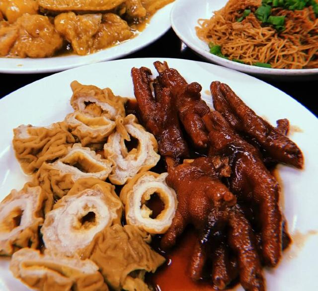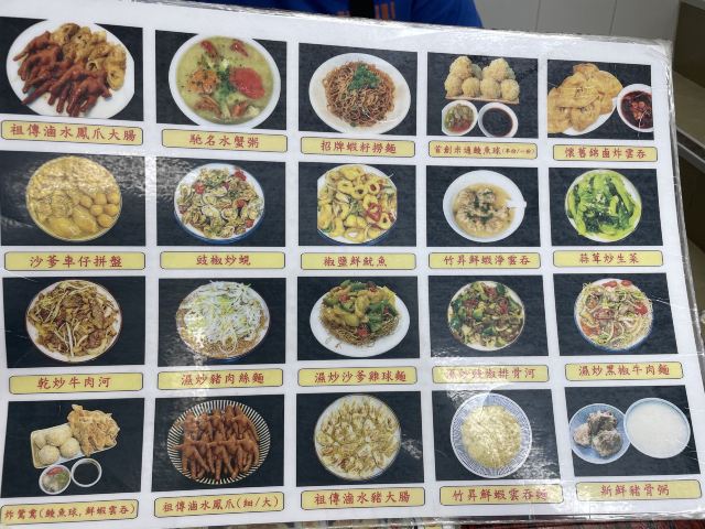 驰名水蟹粥,米通鲮鱼球,卤凤爪,锦卤炸云吞,虾籽捞面,干炒牛河,沙爹车仔拼盘,凤爪拼大肠,虾子云吞捞面,鲮鱼球,虾子捞面,炸双拼,水蟹粥,鲜虾云吞,竹升面,鸡爪