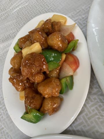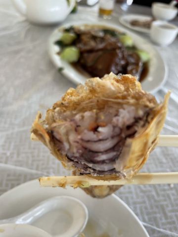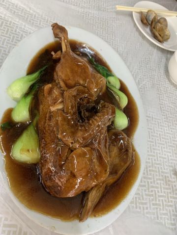 下午2点多到还有的吃是很开心啦!澳门现在整体餐饮惨淡,有的店铺已经拣回原先游客太多时丢失的服务。这家以前没吃上,单单这次的感受。菜品味道可以,稍微偏咸。有特色;不太精致。价格适中。交流有些不耐烦。陈皮鸭:鸭肉酥烂,有陈皮味,可以一试。菠萝生炒骨:就是咕咾肉。好吃的,也就普通水准。炒时蔬:问了半天没搞清楚能选啥菜。最后小老板不耐烦的说,没得选,都一样。蚬子:太咸。虾酱五花腩豆腐煲:相当有特色,我喜欢虾酱的鲜臭。一大碗米饭:绝对需要,菜都太下饭。