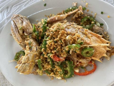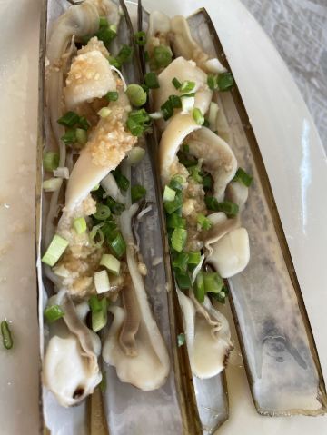 陈皮鸭,椒盐排骨仔,椒盐濑尿虾,虾酱炒通菜,蒜茸蒸蛏子皇,椒盐九肚鱼,瀨尿蝦,九肚鱼,蒜蓉蛏子皇