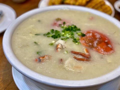 肥仔文美食是澳门一家有名的中餐厅兼茶餐厅,店面不大,但是菜单丰富,面食、粥品这里都有。味道鲜美,价格亲民,营业到凌晨,是宵夜的不二之选。肥仔文美食的金字招牌是“水蟹粥”,水蟹粥是当地有名的料理,肥仔文家做的尤其好吃。蟹肉滑嫩,米粒几乎完全化开与水交融,浓稠绵甜,入口即化。水蟹分量很足,一碗粥有一只完整的水蟹,粥水与蟹膏交融,加上干贝吊味,清爽不油腻,完全不会有腥味,值得一试。
