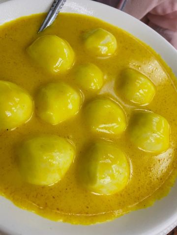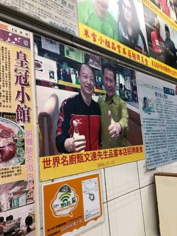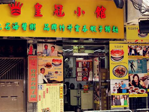 皇冠小馆是一家外表并不起眼的小店,却有很多人慕名而来。店门上张贴着蔡澜和店主的合照,曾来光顾过的明星更是不计其数。他们家以虾子捞面与水蟹粥最为驰名,采用古法竹升打面,使得面条韧而爽口,与大头虾子拌匀,鲜而不腥。水蟹粥的蟹膏融化在粥水中,使得粥水表面一片金黄,水蟹肉质细嫩,粥底口感绵滑。与同类店家相比,价格小贵。