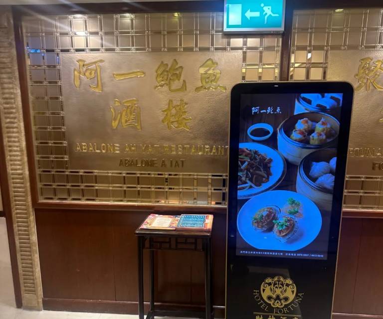 鲍鱼,阿一蝦餃皇,凤爪,金網魚蓉腸粉,烧鹅,流沙包,鮮蝦菠菜餃,特色脆香叉燒包,羅漢齋腐皮卷,黄糖榄仁马拉糕,日式烧汁炸豆腐,招牌黑金包,马拉糕,牛肉球,咸骨粥