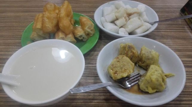 烧卖肠粉,豆浆,油条,炒面,白粥,炸肠,西米露,肠粉,油炸鬼,芒果豆腐花,咸皮蛋瘦肉粥,绿茶豆腐花,萝卜糕,蛋散