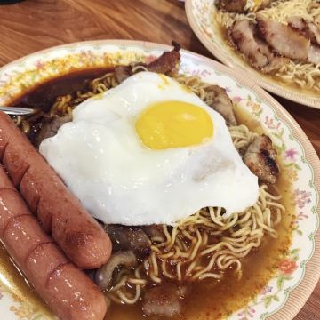 黑椒牛柳粒米粉,匈牙利牛肉,咸牛俐通粉,牛粒炸鸡翼面,肉丁力肠公仔面,猪扒包,牛粒饭,黑椒牛柳粒出前一丁,柠茶,冻奶茶,猪颈肉出前一丁,墨鱼蛋汤米粉,虾滑蛋饭,牛利出前一丁面,马介休鱼煎蛋饼套餐,猪扒三文治