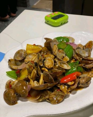 麻辣鸡煲,椒盐玉米,铁板桶蚝,米酒双贝煲
