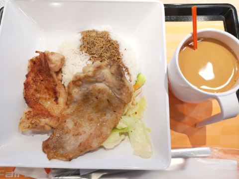 一哥猪扒饭,烧春鸡,蜜汁叉烧拼油鸡饭,海南鸡拼油鸡饭,葱油鸡髀高汤菜饭,南洋咖喱牛腩饭,五宝饭,冰镇樽装奶茶,叉烧四宝反,热奶茶,茄子肉排煲,萝卜牛腩面,蜜汁鸡翼