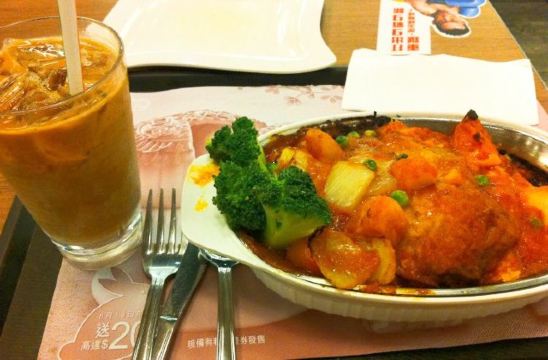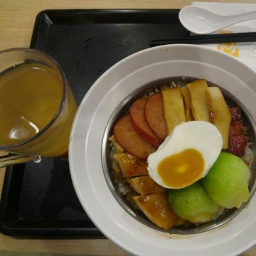 【位置】出了关闸往前走,经过那间来来超市的关闸店之后,往前走大概100米,有个路口转右边进去,就能看到大家乐的招牌了,平时经常在车上看到这家大家乐,因为没在大陆意外的地方吃过,刚好这天是节日,赶着过关,就跟朋友来吃了。 【菜品】其实不怎么喜欢吃这样快餐食品,不过它家还是很多粉丝的,每个季节也都会一直推出新品,这次来就遇上新品出的时候,店内全是新品的招牌; #五宝饭# 选了很久,感觉每样都没什么差别,所以最后纠结完了点了一个综合的,就是店员推荐的五宝饭,里面有叉烧、红肠、鸡肉、咸蛋和鸡腿菇,看起来很多,其实饭碗太大了,里面的内容很少,米饭也少,菜给的也少,就是那种快餐的蒸饭;味道其实还可以,每样东西拼在一起都比较咸,两颗青菜都有点不生不熟的,叉烧和鸡肉都还算好吃,咸蛋味道感觉不太新鲜,下面的米饭有点硬,吃起来没那么香; #热柠茶# 这个没有搭配套餐,趁着店内新品季所以加了一杯热饮,热柠茶没有特别,还算不错喝,只是也是很小一杯的分量,最下面有很多柠檬渣,所以能喝的东西就更少了。 【环境】餐厅在二层,很宽阔的餐厅,里面座位很多,上了楼梯之后先是排队点餐,然后到中间的位置取餐,取餐也要排队,就餐位置还算舒服,有靠窗边的位置,洗手间比较脏。 【服务】除了点餐其他全自助的,也不会有服务员过来,客人吃完饭之后剩在餐桌上的盘子也要等好一会儿才有人过来收。 【价格】这样加在一起50mop,有点小贵,东西一般般,性价比一般;不过作为快餐来说,这里还算干净卫生的,如果在关口附近找不到吃饭的地方,可以考虑来这里吃。