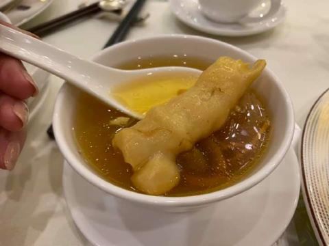 虾饺很多人推荐,虽然他们家也不错,我吃过太多好的米其林所以这家感受也就不那么明显;蒜香牛柳,采用好的雪花牛肉,在我们的要求下,两道热菜选择了加辣,里面可有青椒和小米辣,一口小米辣混合牛肉口味巴适得板,既有了粤菜的香浓,又多了我们喜欢的辣度,非常协调,很快抢光;杨枝甘露很浓郁,不比利苑的差。