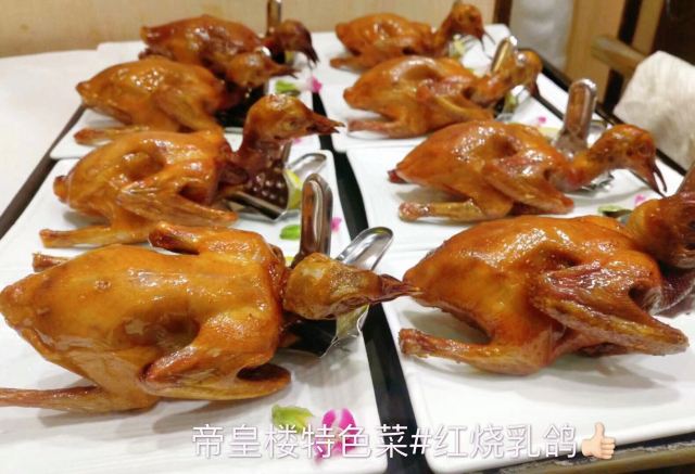 叉烧包,陈皮红豆沙,花雕小笼包,燕窝酿凤翼,椒盐豆腐粒,帝皇虾饺,杏汁炖猪肺汤,鲍鱼扣鹅掌,清湯蘿蔔牛腩,妙龄乳鸽,芥末煎虾饼,椒盐九肚鱼,燕窝
