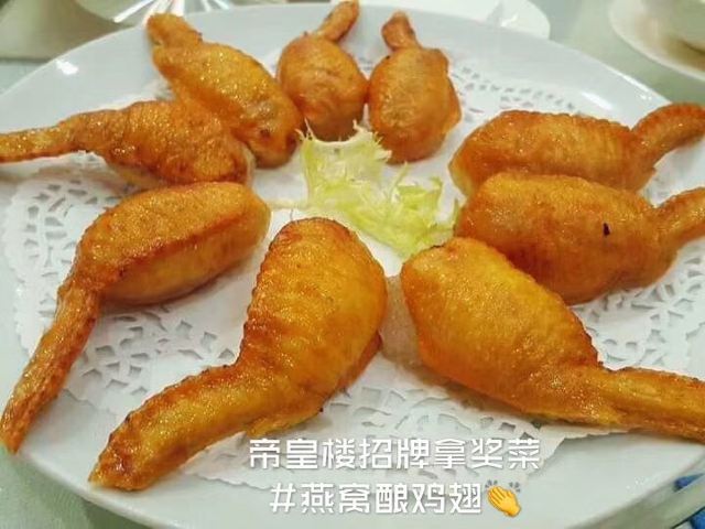 澳门帝皇楼粤菜餐厅位于澳门友邦广场,是米其林1星餐厅,提供地道的高级粤菜。帝皇楼地方虽然不算很大,但环境装修得很精致,营造舒适高雅的用餐氛围。帝皇楼名厨郑锦富以超卓厨艺,炮制一系列新颖又精美的高级粤菜。其自创招牌菜燕窝酿凤翼,是这里的重点招牌菜。将燕窝酿入已拆骨的新鲜鸡翼中,以糖水风干后再炸,松脆外皮和清爽燕窝的组合,深受各地食客欢迎。