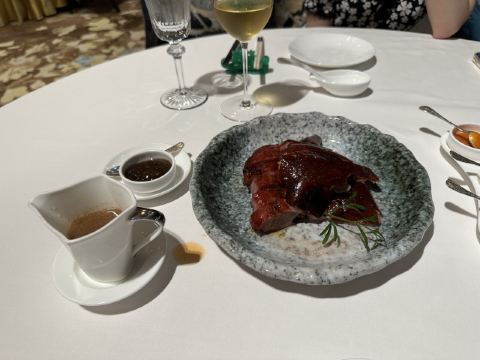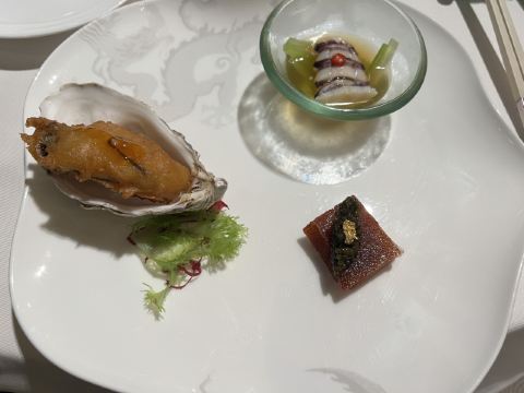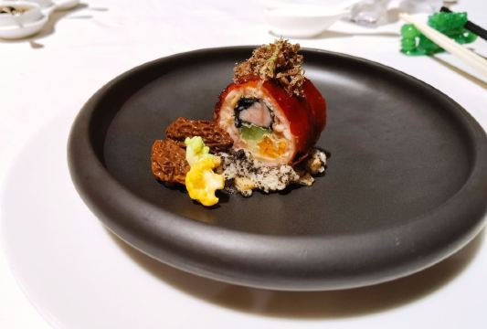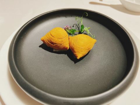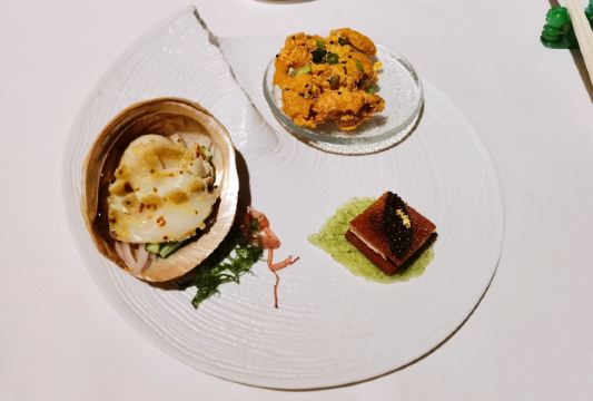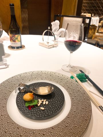 D了个Y上次来 没约到 略有遗憾 这次来之前也是早早定好了位置 又恰逢圣诞 也算是弥补了之前的遗憾 至此澳门的三家米三餐厅就算是打卡完毕了 誉珑轩位于新濠天地二层 离颐居比较近 黑金的风格 既华丽又高贵 一看就是高级餐厅的配置 进门的这条金长廊可谓霸气十足 说是金箔贴的 这一长段 嘿嘿 我只能说太霸气 很好的隔离了外界的嘈杂与喧闹 餐厅尤其注重个人的防护及客人的隐私 但凡是离开席间或打电话都会要求佩戴好口罩 拍照的时候也有服务员一路跟随并提示 不可以拍到食客 想来这里藏龙卧虎 指不定隔壁桌就坐了个谁 关于菜品我是这么觉得的 精致 细腻 丰富 但是不能简单用好吃或是不好吃来概括 因为人少不好点 索性来个圣诞季的主厨推荐 那也是极好的 |金沙软壳蟹^外脆里嫩 金黄一色 |芥末凉拌鲍鱼^芥末恰到好处 鲍鱼爽口Q弹 |黑鱼籽脆皮乳猪^黄鱼籽略咸 乳猪件皮脆肉香 |黄焖厚花胶小米汤^我一直觉得好的餐厅之所以好很大程度上取决于他们的用料 因为为了口感 他们可以不计成本 舍得用最好的料 这个花胶汤汁浓厚 花胶是软糯Q弹 个儿大 口感很好 |陈皮豉汁煮黄皮老虎斑球^一般十年陈皮都是上品了 换个三十年的你再试试 |黑松露脆皮鸡卷^皮脆肉鲜 香气扑鼻 黑松露的味道 就是上头 |香煎腊味糯米腐皮饭^外脆里糯 带有腐皮的香气 |菜蜜桃胶炖燕窝^由内而外 补血养颜了 哈哈 最后 商家还给了个小纪念品 一支誉珑轩餐厅的定制款纪念笔 哎呦不错噢