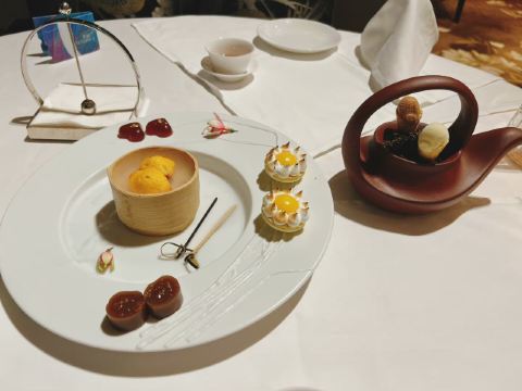 馬卡龍小姐【位置】在新濠天地的二楼,看着这么简单的地址,本来以为很好找,没想到里面的餐厅很多,而且里面没有礼宾部的人带路,问了门口的女咨客,竟然也不懂路,最后还是在娱乐场门口的保安帮到我们的,其实餐厅有发确认信给我,但是位置却一点都不详细,明知道里面有很多不同的入口,有不同的酒店,有不同的电梯口,是不是应该温馨的一点提示客人呢,从这里的第一感觉就没有好感了。 【口味】这里的午时茶点很多,是这里的特色,也是很值得一试的,菜单上也很丰富,还有很多贴心的提示,是厨师的推荐又或者是食客的推荐的: #前菜# 一些开胃菜,是高级食府必备的,为的是让食客的味蕾在一瞬间打开,这一道里面有陈皮,所以一口小小的已经足够了; #御龙翡翠龙虾饺# 这个是最期待的,里面是进口的蓝龙虾,肉的口感非常厚实非常好吃,搭配着绿色的蔬菜,令到整体的口感一点也不腻; #毛蟹小笼包# 这个小笼包也是很值得的,里面的蟹肉非常细腻,服务员会先拿着醋过来问是否需要添加,如果不需要的话其实可以尝试原口味吃,会很美味; #一口和牛酥# 虽然这一道也是推荐的,但是有一点点失望,里面的和牛比较肥味道比较重,而且有点咸,外面的一层酥不够脆; #金腿开萝卜丝酥# 这一道非常好吃,里面的萝卜丝超级香甜,最重要的是外面很酥,而且口感是我觉得这么多家餐厅里面的酥最好吃的; #京葱香煎豚肉汤包# 这个包子里面的豚肉其实不大能吃得出来,可能实在太细了,所以口感一般般; #正山小种# 茶不够香,感觉只是很普通的茶叶,并不是高级食府的好茶叶,所以有点失望呢。 【环境】作为一家福布斯餐厅和米其林二星吃的餐厅,这里非常高大上,环境很优雅,同时一直在播放一些七八十年代的老歌曲,浪漫的蔡琴、邓丽君,还有汪明荃,悠扬的音乐的确是很不错的;位置也很舒服,非常舒服的卡座。 【服务】这里的服务有点令人大跌眼镜,这么星级的餐厅,服务员基本上一直在聊天,还有一些看起来像是餐厅领班或者经理的人,好像是只接待外国人一样,中途来了一围外国人,才亲自上去服务,这样的区别对待也是挺... 【价格】不便宜,所有的东西基本都是按照个数计算,人均300+,而且不太能够吃饱,其实体验一下还可以,不过应该不会再去第二次。