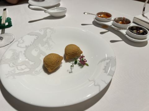 Jade Dragon誉珑轩的点心,yyds!! 昨天吃米其林一星玥龙轩的点心就觉得很香了,但誉珑轩不愧是米其林三星,味道品质都更好,无可挑剔的美味。 呜呜,五月份再来澳门的时候,我还要吃他们家! 图七是七星椒炒的软壳蟹,21号吃过的,今天风月又点了,难得见他热衷于蟹类,以往都是我第一个人在吃~共享美味,快乐up~~