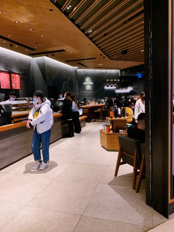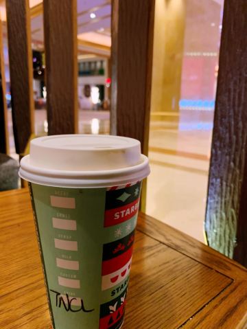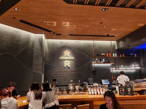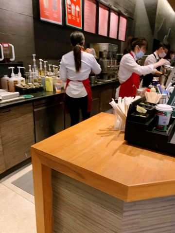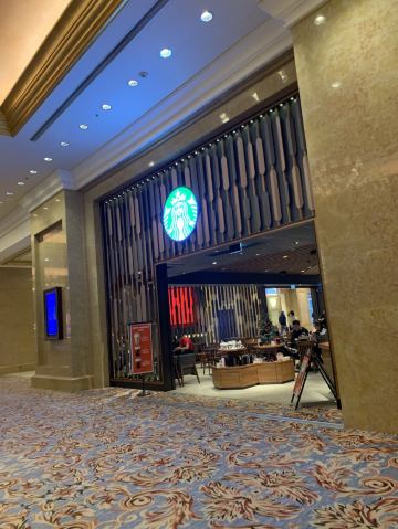 这家星巴客是家臻选店,位于威尼斯人购物中心的一楼,旁边不远处是威尼斯人小剧场。由于这里的位置很好,几次来的时候,这里都坐满了顾客,一般都需要排队点单。同伴先去找了个位子。点了杯摩卡,店员操作很熟练。很快就拿到了。品尝了下,口感较为浓郁,个人还是比较喜欢的。在这里品尝杯咖啡也好不错的。