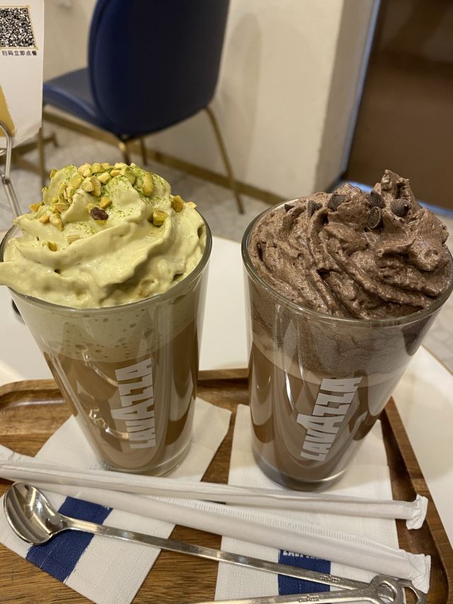 这家咖啡店小小的咖啡品种并不是很多,夏天的时候喝一杯冰咖啡蛮舒服的,选择一个新品叫什么开心果奶盖的上面的奶油是绿色开心果口味的。
