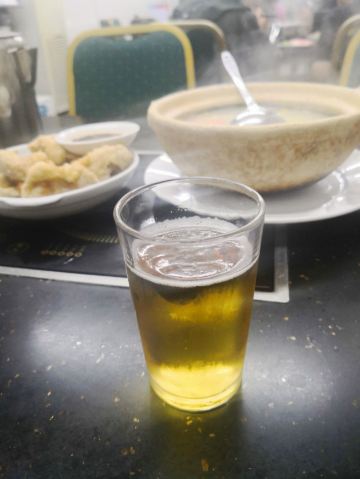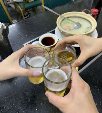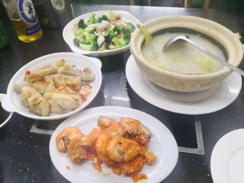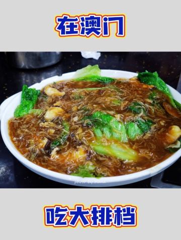 夏半夜_花花在到达澳门🇲🇴的第一个晚上就来了。住在新城区打车前往老城区不算远,到的时候是晚餐时间,人没有坐满,9点过后生意很好,当地居民和游客都络绎不绝。 🍲猪骨煲 又当火锅又当汤,似乎是澳门大排档的定番,骨边肉就是坠好吃的,汤鲜肉美,没人点我会伤心 🥬瑶柱烩生菜 瑶柱一向是浓郁鲜美调味的代表与百搭型优质队友-生菜奏出和谐乐章,热乎乎带着锅气的一盘菜,非常推荐 🦐咸蛋黄炒虾 我觉得咸蛋黄放得有点少,口味偏淡 🌽椒盐粟米和🫑豉椒花甲 可以随便吃吃,蔬菜很新鲜 🛎店主大叔很实惠,整体价格也平,性价比无敌,埋单还能用支付宝,方便你我他 🌙点上一瓶啤酒,再来一锅猪骨煲,澳门的大排档拿捏了