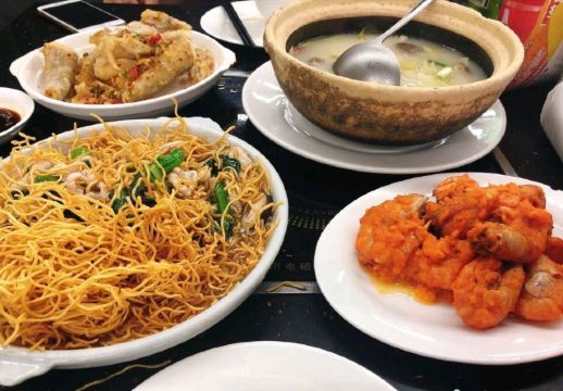 椒盐九肚鱼,南乳炸排骨,沙姜鸡,咸蛋黄炒虾,七彩炒饭,干炒牛河,七彩墨鱼丸,支竹羊腩煲,椒盐粟米,猪骨煲,胡椒猪肚,豉椒花甲,瑶柱烩生菜