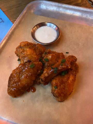 他们家的鳕鱼好好吃呀,有好几种做法,我们选的油炸的还点了一些小吃,就像炸鸡翅这种做的是英国风味,外面裹的一层甜蜜酱的哟,