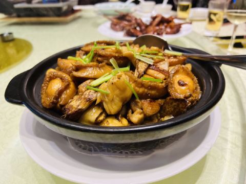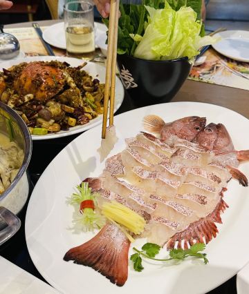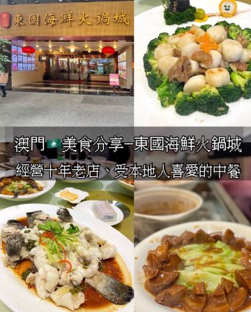 澳門🇲🇴莎莎 Sasa Choi澳門🇲🇴日常美食分享-東國海鮮火鍋城 經營十年老店,受本地人喜愛的中餐 公司團年飯預定在這用餐,這家已經開了十年了 有海鮮火鍋和粵式炒菜其實中午我也常來這喝茶吃點心,這可以說菜色真的超級無敵多哦! 而且地理位置非常方便就在氹仔市中心、 性價比很高還經常會有套餐價很優惠! 常常爆滿、有時候要排隊,所以記得ㄧ定要訂位比較安全🥺 有包房、環境不錯☺️ 這次老闆請吃團年飯 😆菜色很棒 人均大約@698/位 已加10%服務費 真得很值 😋 還提早預頂了2頭鮑 服務員現場加工烹飪 看著就開胃 🥰 🥰🥰 這裡聚餐確實不錯~👍🏻 ❤️鮑汁2頭南非鮑魚拼鵝掌 ❤️薑蔥焗西奧龍蝦--灼生麵底 ❤️花膠螺頭煲老雞湯/例 ❤️富貴花如意炒帶子 ❤️發財好市瑤柱脯 ❤️鮮花椒蒸條頭杉斑魚 ❤️脆皮炸子雞(壹只) ❤️生炒臘味糯米飯 ⭕️原味西洋菜 ⭕️還有鮮果拼盤 /酥皮蛋撻仔 包房茶位$12/位 ⏰營業時間:週一至周日 10:00-15:00 / 18:00-23:00