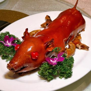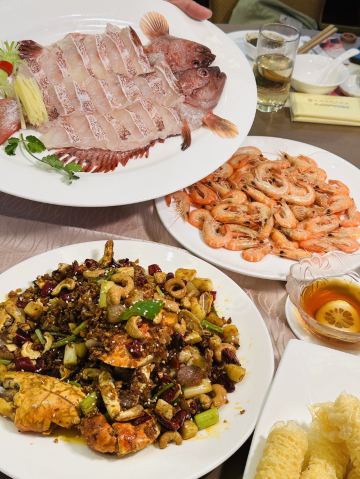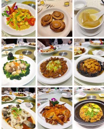 姜葱炒阿拉斯加帝王蟹,澳门骨煲,沙姜白切猪手,美国雪花牛肉,刺身拼盘,海鲜象拔蚌,鱼翅,燕窝,三文鱼唇,海鲜火锅,翡翠花胶炒蛋白