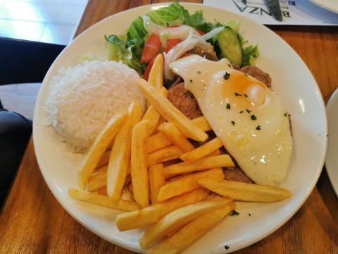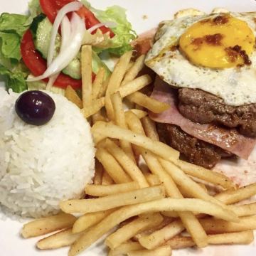 猪肉粒炒蚬,马介休球,烤猪排,烤牛排,奶油蛤蜊,烩鸭饭,烤乳猪饭,葡国菜