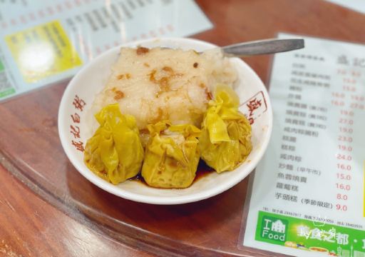 和小伙伴两个人一路老城区吃小吃。 🥣「白粥」白粥熬到米粒都“消失”,简单又清甜。 🥚「咸皮蛋瘦肉粥」皮蛋瘦肉粥就是正常水准,没什么特别,也可以吃吃。 🐟「鱼茸烧卖」特别的是烧卖上面那层鱼茸,但鱼茸又略有点腥气,可以点普通的烧麦。 🥕「萝卜糕」萝卜糕和想象中的不大一样,略有点失望。