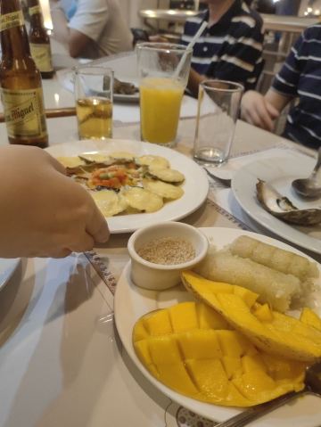 YoYo_6Z1D3M3B算是老牌落日观景餐厅 观赏落日绝佳,适合情侣宴请客人 有活海鲜, 清蒸螃蟹/ adobo pusit 墨鱼汁墨鱼 看起来很黑暗 品尝后口味不错,酸酸甜甜! 旁边还有个海洋公园,可以逛完海洋馆再来晚餐看落日