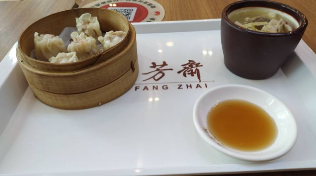 五芳斋的烧麦也很好吃,值得尝试。老鸭汤好喝的