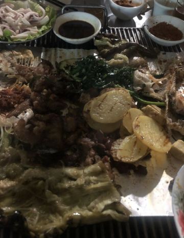 炝拌心管,烤牛肉,烤茄子,烤罗非鱼,烤牛膘,米干,烤猪皮,烤五花肉,烤牛骨髓,烤白菜