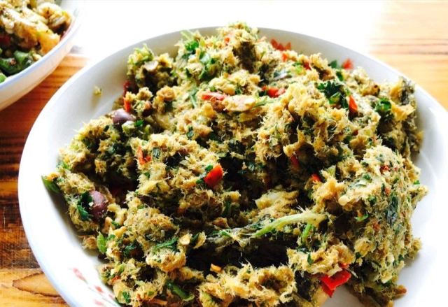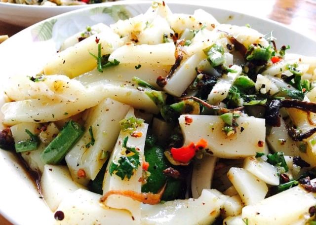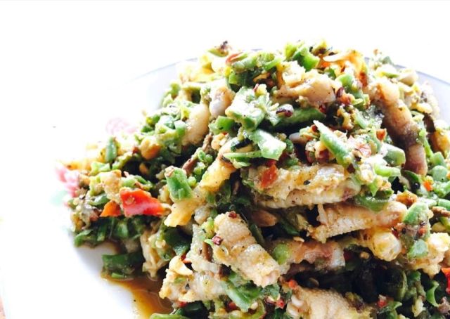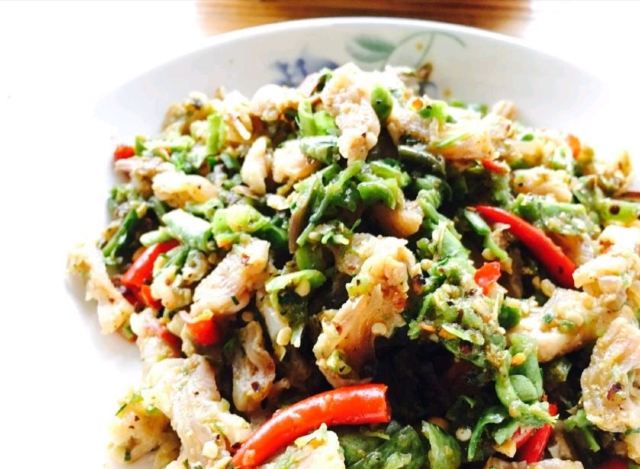 腌菜肉丝炒饭,舂鸡脚筋,舂豆腐,红糖稀饭,菜包鱼,舂黄瓜,冰咖啡,干巴炒饭,芒果干,柠檬汁,拌土豆,炸红薯