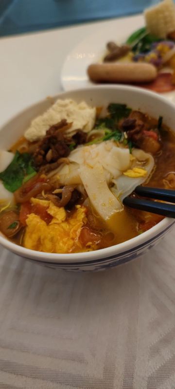 这个餐厅早上提供自助餐,然后一直到下午两点之前都可以吃过桥米线。酒店有团购98元吃一套过桥米线。可惜没时间吃了。早上自助餐也有米线,味道还不错。