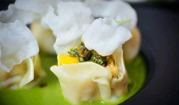 这家餐厅不错,设计的类似于台湾的铁板烧的样子,大家在长桌子坐下,里面的黑椒牛排很不错,热乎乎的出炉,点心做的不错,有点像馄饨。