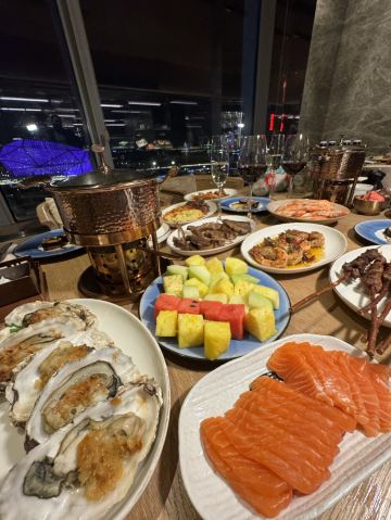 羊排,煎三文鱼,大闸蟹,烤生蚝,龙虾鲍鱼,烤大虾,扇贝,可丽饼