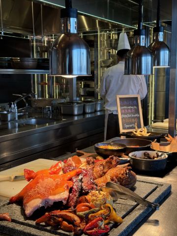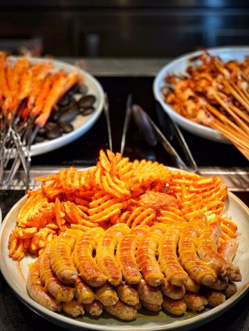 Zoe616新世界酒店自助和ONE FULL联名了!! 西班牙美食主题自助餐菜品全新升级 多元化盛宴 菜品还是环境都令人惊喜 每周五周六还有限时派送~不要错过 - 🍣日料区 帝王蟹腿 厚切的三文魚…吃到爽 寿司也超级精致 而且都不限量!! 🦞海鲜区 扇贝 生蚝 大虾都很新鲜 个头很大 🍷位上派送 周六是龙虾 西班牙蒜香油浸黑虎虾 还有焦糖鹅肝鳗鱼和萨拉米杭椒卷 龙虾肉吸收了蒜蓉汤汁的鲜美 肉质肥美 焦糖鹅肝鳗鱼是本次我的最爱 真的好吃 🥩烧烤区 现煎牛排、羊排、肉串… 还有ONE FULL的总厨亲自下厨 烹饪伊比利亚黑猪肋排和现煎黑虎虾 🍧甜品区 各种甜品蛋糕不限量 还有冰淇淋