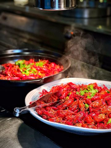 小红猪🐷沈阳最喜欢的酒店自助餐厅,位于五里河地铁站旁芊丽酒店,交通便利,停车容易。 菜品种类繁多,都是经过精挑细选的硬菜!三文鱼等刺身很新鲜,飞蟹、醉蟹、大闸蟹不限量很过瘾!小龙虾,烤生蚝的口味赞。 牛排、烤肉串、炒菜也都很好吃。甜品和椰子别错过啊~饮品果汁口味纯正,进口饮料也不少。 周末的位上派送有龙虾、红柳肉串之类的,都好吃。 ~ 环境很干净,能看到浑河和大钻石,沈阳最好的位置啦,推荐32号座位,最好提前预定。 服务态度令人满意,厨师们幽默友善,服务人员很贴心,帮忙换座位,撤空盘。很正和Russell等服务主动积极,微笑礼貌,让我下次愿意再来。