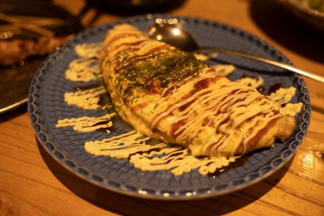 摆渡修行要了2000日元一位的套餐,再加一个饮料放题。我觉得,挺好,挺便宜的,就是点单的pad桌面,令人有点在意。 很快我就没有心情想桌面的事情了,为什么你们的饮料放题里面全是獺祭啊,山口人民的水龙头里流的难道是獺祭吗。 又香又油的烤串很快上来了。我拿了公筷夹散了两串,方便大家夹着吃,发现大家呆呆地看着我。 “怎么……你们没有东京那种一根串串三个人分的习惯是吗……” 人们齐刷刷猛点头。 店员恰到好处地又递上了两盘一模一样的串,我呆在当场。 六碟小菜。美乃滋三文鱼,美乃滋芝士蛋包饭,培根芝士美乃滋披萨,炸串,铁板豆芽炒大肠,还有一盆油光锃亮的蒜香五花肉蛋炒饭。 我一直以为国内的美乃滋日料不是啥正经日料。现在看来,是我冤枉它们了,是正儿八经的山口料理!! 这一桌整得,特别香。就,那个油光闪闪的蒜香五花肉炒饭上来的时候,整个屋子都弥漫着卡路里的香气。一口吃下去,竟比闻起来还香。