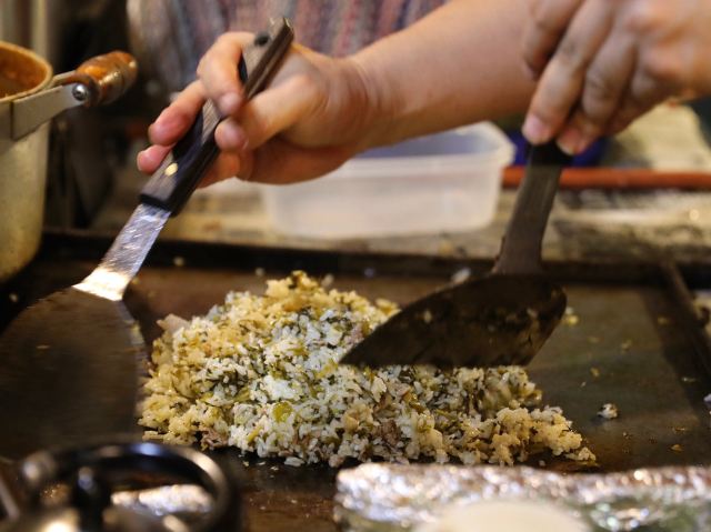 Ufuya餐厅的豚骨炒面像是热量炸弹版的烂糊面。熬得浓郁、浓稠、浓厚的香浓豚骨汤,舀一大勺,浇在滋滋作响的铁板上。用铲子漫不经心地圈住它,叫它不四处乱跑。 等汤汁收紧了,就把煮好的细面加进去,加一点炒面的酱汁,加一点牛肉和白菜,小心地翻炒。最后出来的烂糊面,就是福冈鲜为人知的名物——博多炒面。 香浓甜软,没有镬气。 好不好吃的因人而异,建议参考“微甜/浓厚/烂糊”的关键词,比对一下自己的雷点。