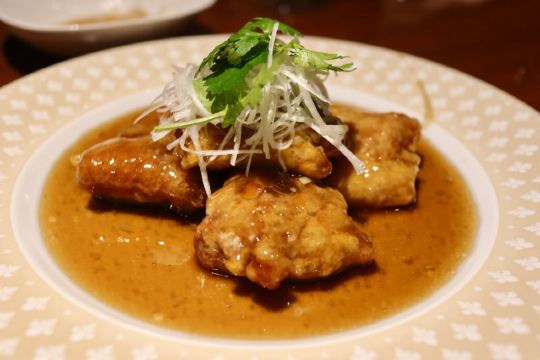 Meido-cho Chugoku-sai Ishin一家会用达摩正宗的中国料理蟹的店。 蟹特别好。很新鲜,很肥厚。店家细细地把蟹肉都剥了出来,码在蟹壳里,(我做梦都不敢想有这种好事。)浇上黄澄澄的蟹黄和蟹膏,再淋一点姜丝酱油,吃的时候,用勺子kuǎi着吃。 蟹黄油脂饱满,肥厚膏腴,蟹肉细嫩香甜,配一口甘醇柔和的古酒,酒的鲜味和蟹的鲜味儿融在一起——绝了。 ………就是吃起来有点快。 重点说完了,说说这家的餐酒搭配。 日本酒和中餐怎么搭,真是一个令人挠破头皮,又不得不解决的问题。 故事的开头,是@林萍在日本 小姐姐拿这家店诱惑我,说是一个很懂日本酒的朋友安利的。我一看,嚯,用达摩正宗的古酒来搭上海蟹,这事我想干好久了!! 跑去问了达摩正宗的白木小姐姐,她说知道这家店,店主的夫人非常懂酒,是很厉害的行家。我就蹦蹦跳跳的去了。 同行的日本大哥也非常懂酒,点餐+点酒,循序渐进,非常利落妥帖。 先上了口水鸡,是日式的做法,鸡肉很嫩,酱汁清澈干净,微辣。配上一点焦香的白芝麻和香菜,很开胃。之后又上了清爽的海蜇和小葱皮蛋拌豆腐。 这几道搭的是「一代弥山」,是一款香槟口感的气泡清酒,味道酸甜清爽,喝起来有桃子和柑橘的芬芳,度数很低,很适合做餐前酒。 之后上了热腾腾的蔬菜小炒,爽脆的韭菜,有点肉感的茭白,略带一点虾蟹的调味。配风之森的雄町,无过滤无加水,精米步合80。 精彩到快要拍案而起了。 雄町的酒米,加上低精白,在风之森新鲜清爽的基础上,增加了一点醇厚浓郁的风味,很适合配小炒了。 然后是烤鸭卷和蜜汁叉烧。 做得很好,一点也看不出来是日本的餐馆。叉烧尤其甜蜜肥美,就像我一样。配的是極上ノ斬,这是我第一次喝岩手县的酒,爱上了。 扒过来看一眼瓶签儿。「山田锦」,「高精白」,「冰温熟成」,「袋吊」,每多看一个字,脑子里的计价器就翻一翻。酒是真的好喝,味道清澈,米香迷人,入口即逝。不抢味,又不会觉得过于寡淡。 最后是蒸鱼,和虾肉海鲜小炒饭。 在这边吃到蒸鱼的感动真是难以言喻,我没有办法正确的评价了。炒饭倒是很棒,有劐气,粒粒分明,海鲜弹牙,好吃又不会觉得油腻。 搭的是「高清水加温熟成解脱酒」,这款酒也是我第一次喝。一顿饭骗两瓶没尝过的酒,也太开心了!