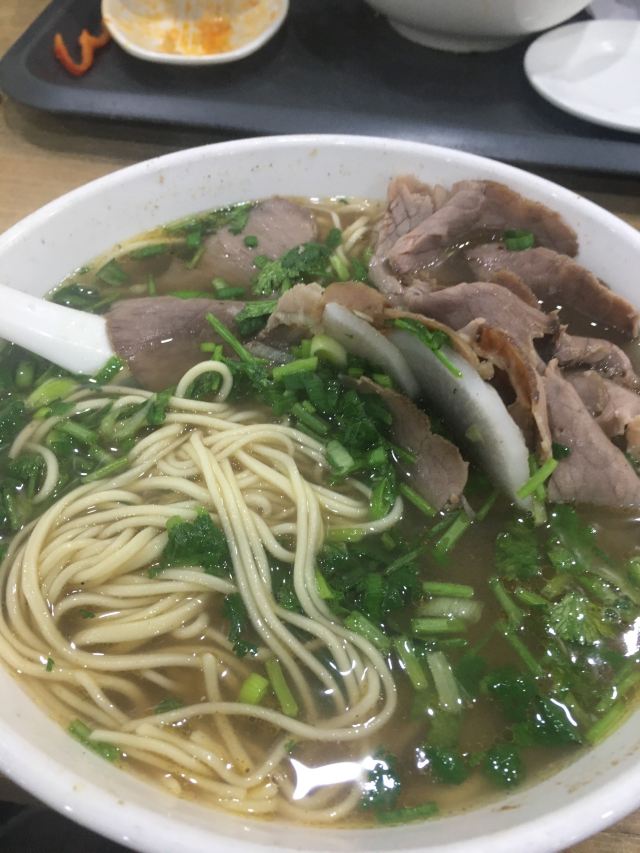 著名的西来顺,种草很久了!同事中午为吃碗面能驱车20公里赶来吃,吃过才知道味道正宗,干切牛肉面17块一碗很大份量,面多牛肉足,关键汤料特别鲜!凉面就免费牛肉汤也不错哦,就是对女生而言太多量吃不完。锅贴外焦内嫩,油汁水不太多但味道很好。满满都是就餐人,要等翻台,还要自己去端盘子哦!