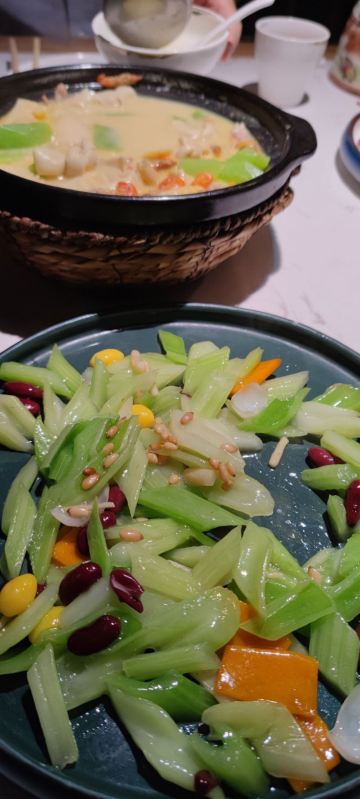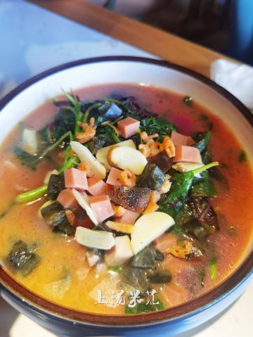 小桥流水,环境不错,就是座位间距有点小,胖点就不方便。 扫码点单,有几道经典杭帮菜都缺货,还有一半左右的辣菜可选,显然是照顾南京人的口味了。 好吃不贵,使劲点,没吃完打包了,人均也没过百,说说我觉得比较好吃比较实惠的菜: 吴越葱烤鸡,68元/只(可点半只),皮酥肉嫩多汁。 油爆大虾,58元,鲜甜肉弹。 杭三鲜,39元,相当于南京的六合头道菜,这价格超实惠了。 上汤米苋,28元,配料良心份量足。 阳春面,26元,汤清鲜美,面条口感正好,偏苏式。 西施奶香小豆腐,22元,优秀的招牌甜品,松软香甜不腻。 冰粉太甜,凉菜感觉都是半成品食材做的,口感一般,可以不点。 总体,性价比优秀。