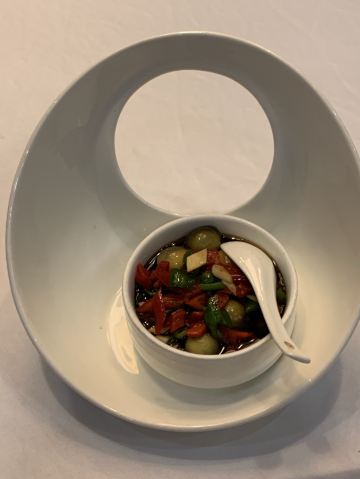 花园一号的确位于美丽的花园里。具体位置就在大钟亭公园里。进公园后,看到别致的花园景致,在此用餐,心情也会愉悦很多。此处也来过多次,应该说一直是较为满意的饭店。这里与包间为主,包间里的布置也别具特色。比如这次的包间的背景就是大钟亭花园的屏风背景。还有菜肴,也是颇为精致的,还有些创意菜也很有特色。整体而言,在这里用餐,可谓闹中取静,还可以品尝到美味佳肴。