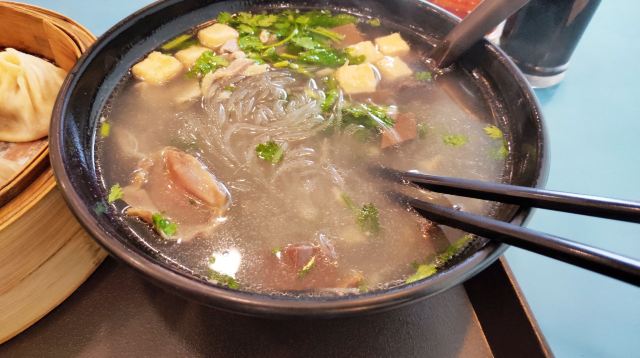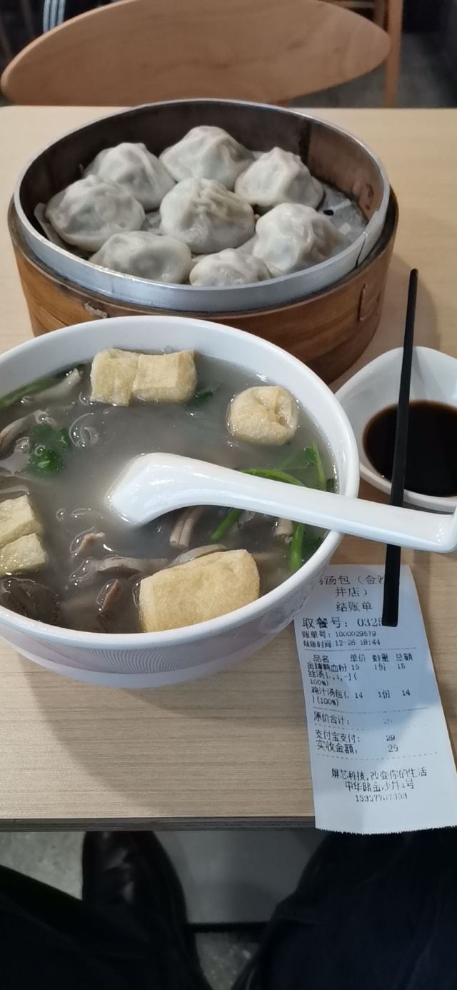 去南京旅游,有朋友介绍老鸭粉丝汤还是去回味吃比较好,因为不在景区里,所以南京本地人去吃的蛮多,点了一碗老鸭粉丝汤,一客小笼,一共38元,老鸭汤很鲜,一点腥味也没有,小笼皮薄,有汤汁,馅料足。味道蛮好。