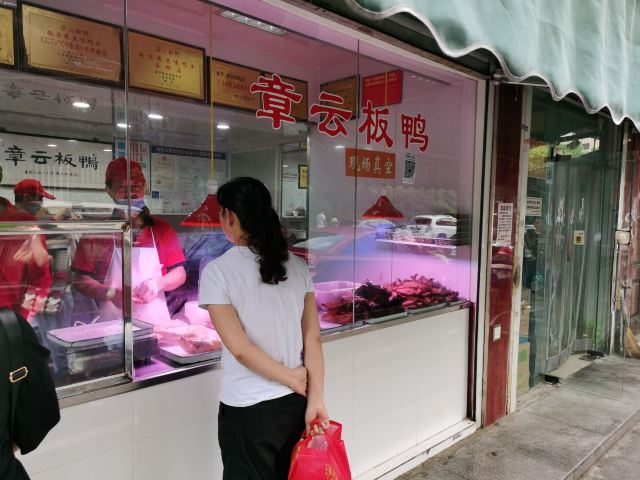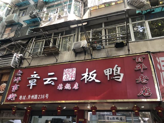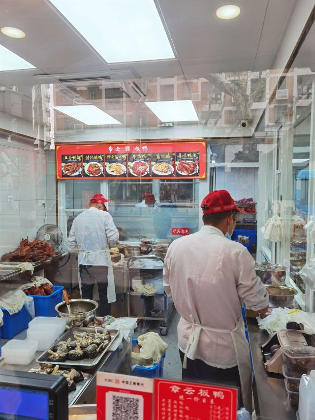 在南京,章云板鸭店算是赫赫有名的,这家店现在位于升州路236号,距离原来的评事街并不很远,有不少人还是较为认可章云鸭子的,包括许多外地人也慕名前来。个人较为喜欢章云家的烧鸭和盐水鸭,感觉还是蛮好的。这家店经常还是要排队的,有时路过,也会斩半个鸭子回家当菜吃的。