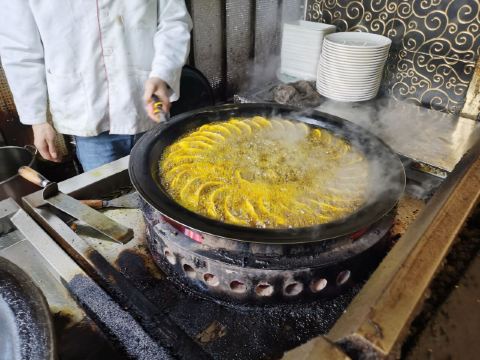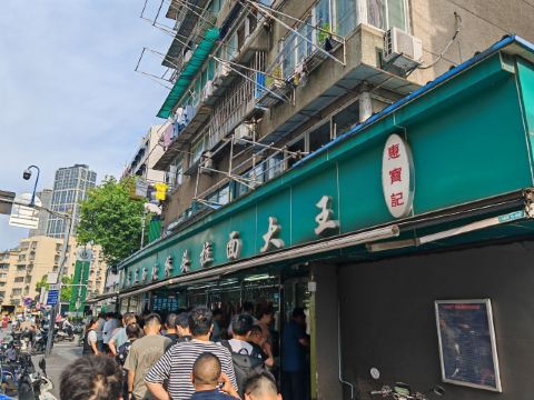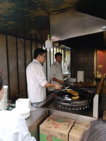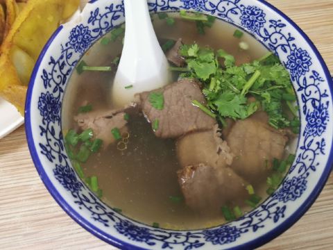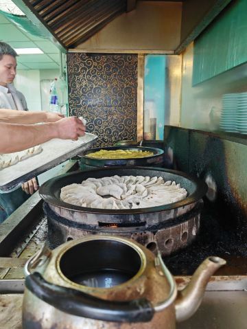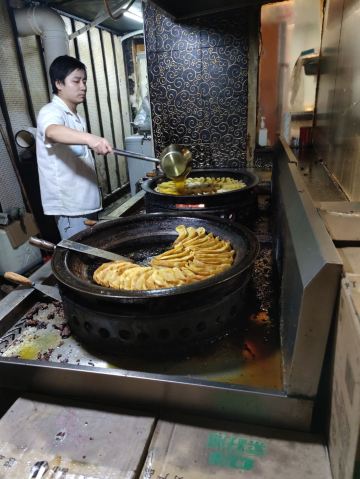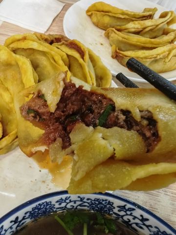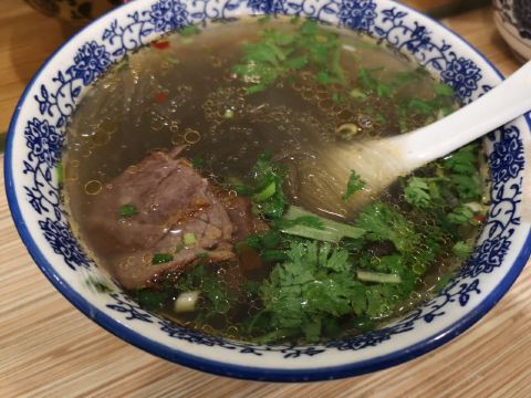 南京的朋友推荐的宝藏美食,清真锅贴店,据说全天候排队。一大早来买锅贴,果不其然,乌泱乌泱地排了四十分钟,买了三两。店里有座位,可以再点下汤和饮料,配合鲜美多汁的牛肉锅贴,完全就是一个爽!本地人也多有来买个半斤锅贴的,更有直接买新鲜牛肉的。