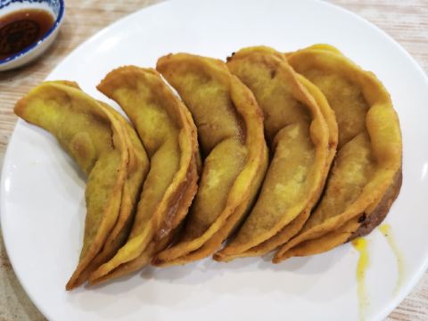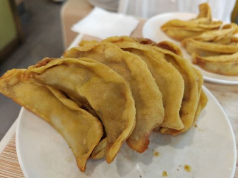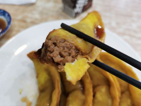YoYo_0L5L4B2J本地人推荐来吃的,锅贴真的很好吃,吃后念念不忘,一两锅贴一份凉菜,一碗云吞,两个女生吃的饱饱的,向前走100多米有一家梅花糕,也是很好吃的