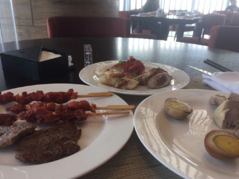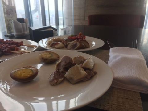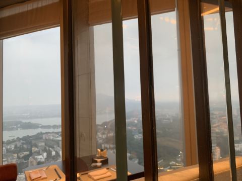 地平线餐厅隶属于洲际酒店,位于江苏第一高楼紫峰48楼,这里有观景台,可以俯瞰金陵城,玄武湖也尽收眼底,下午五点多去吃晚餐,能同时欣赏到南京白天和夜晚的风景。 小孩超过1.2米收费150元,不少顾客都是带孩子来吃饭,看看南京的夜景,菜色和口味一般,自助餐的口味基本都很难留下印象。